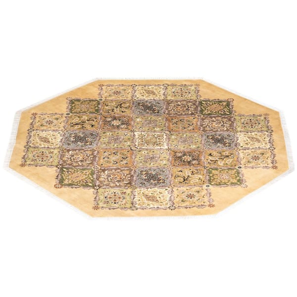 Mogul Traditional Yellow 6 ft. 1 in. x 6 ft. 1 in. Oriental Area Rug
