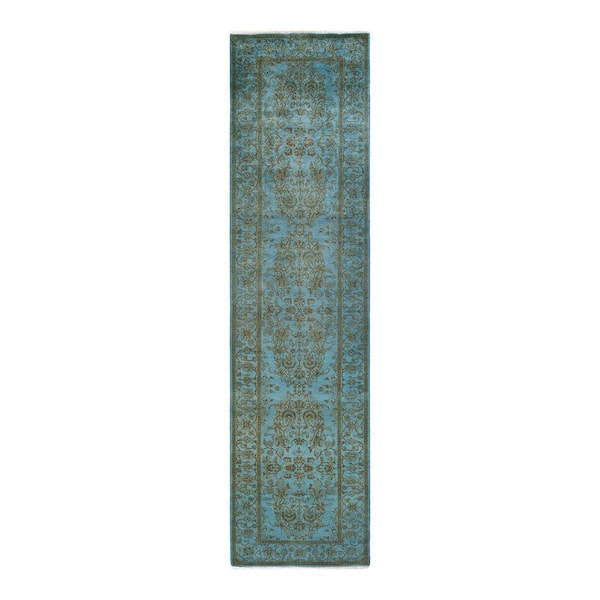 Overdyed Blue 2 ft. 8 in. x 10 ft. 5 in. Wool Indoor Area Rug
