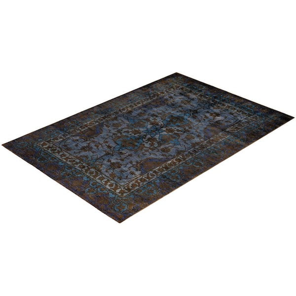 Overdyed Blue 6 ft. x 9 ft. Solid Wool Indoor Area Rug