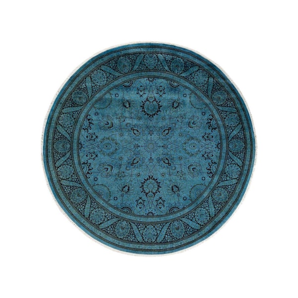 Overdyed Blue 7 ft. x 7 ft. Solid Wool Indoor Area Rug