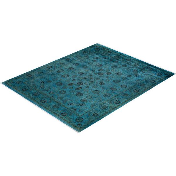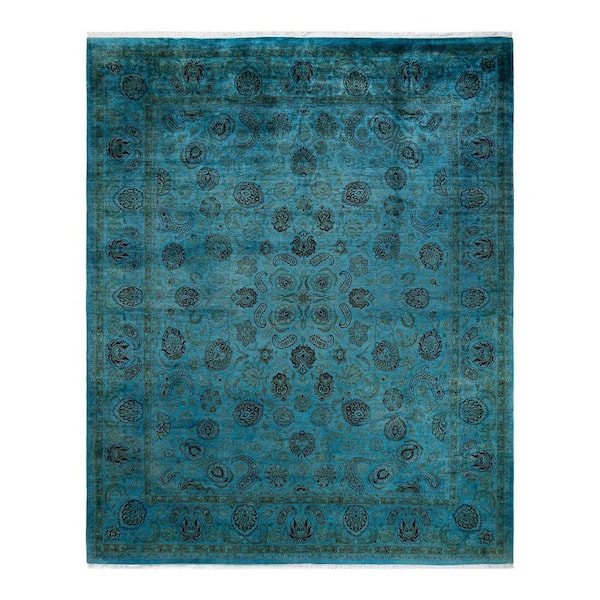 Overdyed Blue 8 ft. x 10 ft. Solid Wool Indoor Area Rug