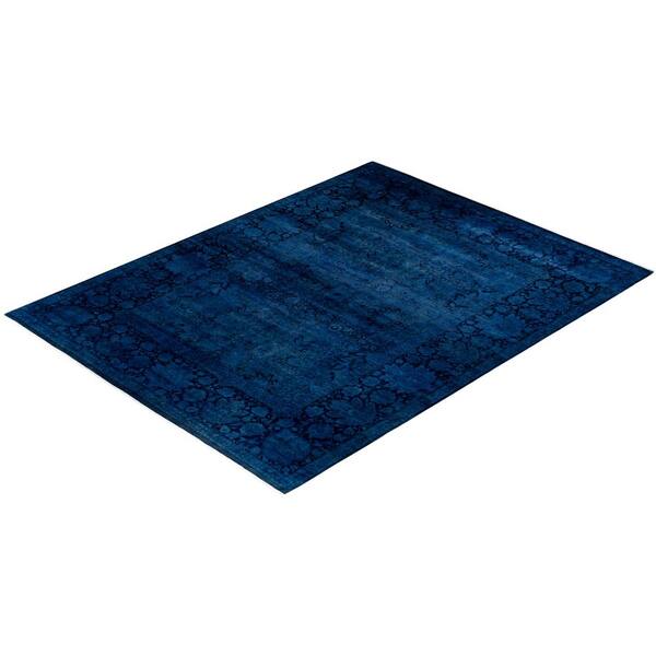 Overdyed Blue 9 ft. x 12 ft. Solid Wool Indoor Area Rug