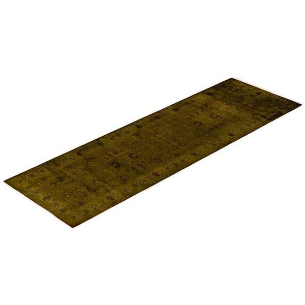 Overdyed Brown 3 ft. x 10 ft. 8 in. Wool Indoor Area Rug
