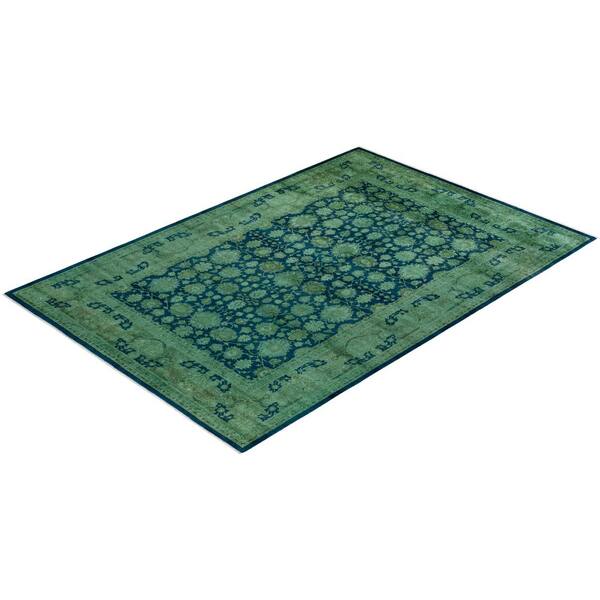 Overdyed Green 6 ft. 2 in. x 9 ft. 2 in. Wool Indoor Area Rug