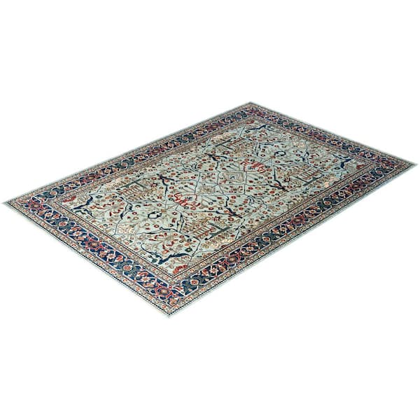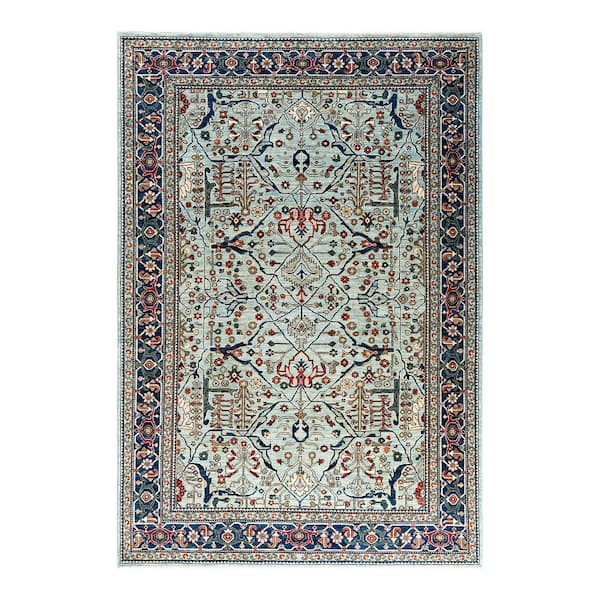 Serapi Light Blue 6 ft. x 9 ft. Tribal Wool Indoor Area Rug