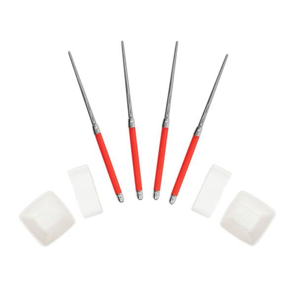 Chopsticks with Red Handles, Ceramic Rests and Sauce Bowls, Set of 2 Pairs