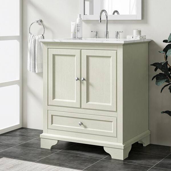 Christaphe 30 in. W x 20 in. D x 35 in. H Single Freestanding Bathroom Vanity in White with White Cultured Marble Top