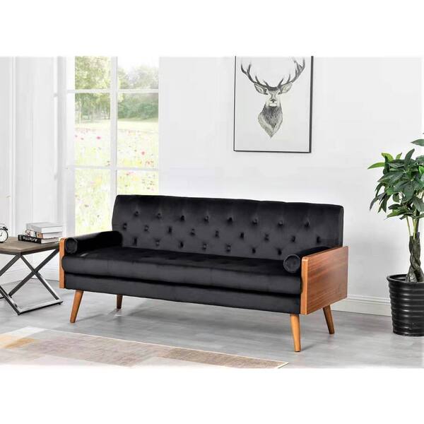 Christie 68.5 in. Black Velvet 3-Seater Lawson Sofa with Square Arms