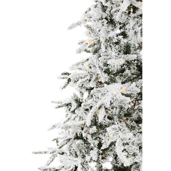 7.5 ft. White Pine Snowy Artificial Christmas Tree w/ Clear Smart String Lights, High Quality PVC, Flame Retardant