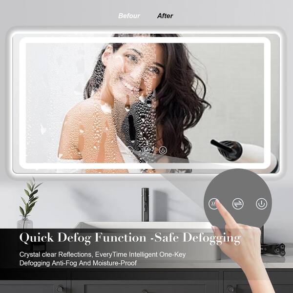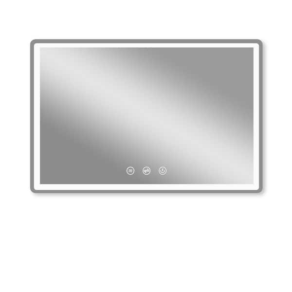 Chrome 40 in. W x 24 in. LED Modern Aluminum Alloy Frameless Rectangle Wall Mirror