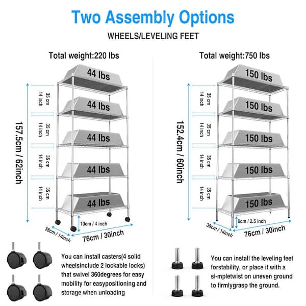 Chrome 5-Tier Metal Wire Shelving Unit (30 in. W x 60 in. H x 14 in. D)