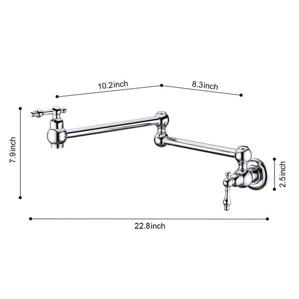 Chrome Wall Mount Folding Pot Filler Faucet Double Handle 360° Swivel Splash-Free Aerator Durable Kitchen Faucet