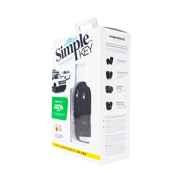 Chrysler Dodge Jeep Simple 3-Button Smart Key w/ Emergency Key Insert, EZ Installer - Lock, Unlock, Panic