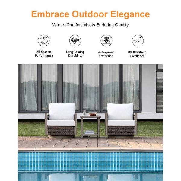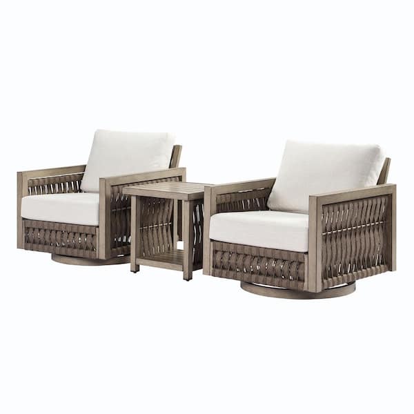 Brown 3-piece Woven Rope Alluminum Outdoor Patio Conversation Set with Swivel Sofa and Cream Cushions