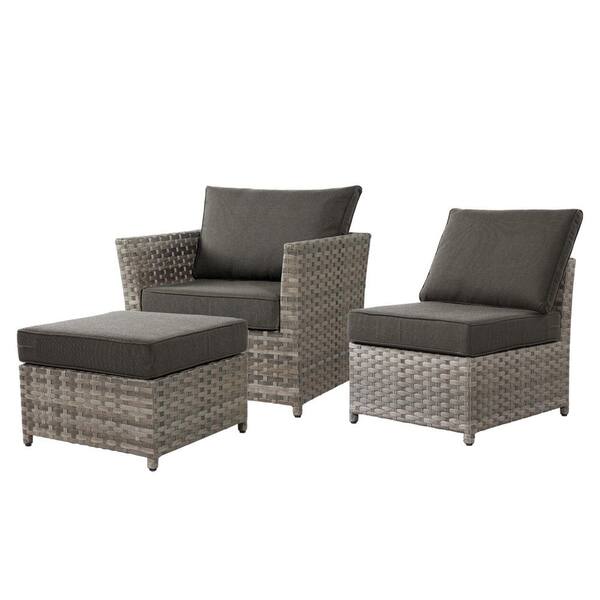 Cinnamon 3 Pieces Wicker Patio Conversation Seating Sofa Set with Black Cushions