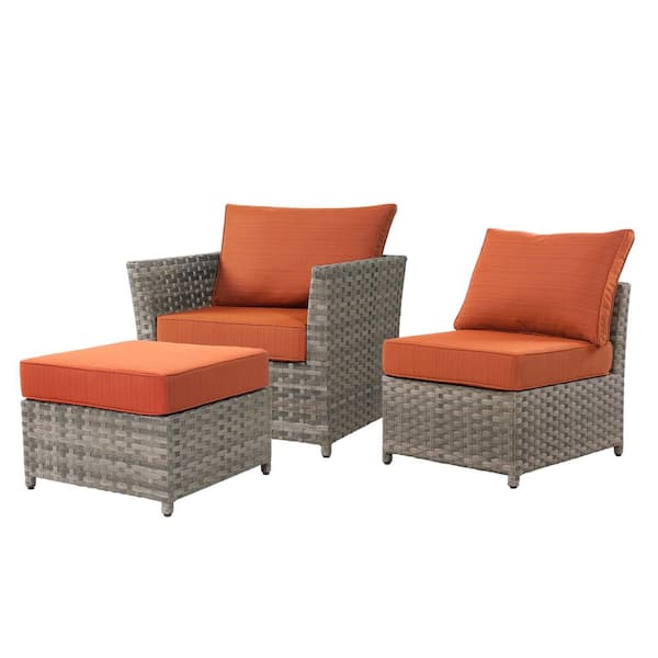 Cinnamon 3 Pieces Wicker Patio Conversation Seating Sofa Set with Orange Red Cushions