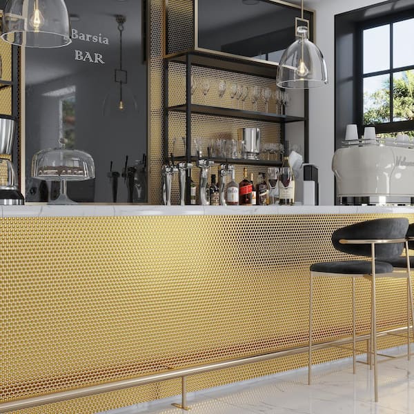 Cirkel 4 in. x 0.25 in. Glossy Gold Porcelain Mosaic Wall and Floor Sample Tile (0.14 sq. ft./case) (1-pack)