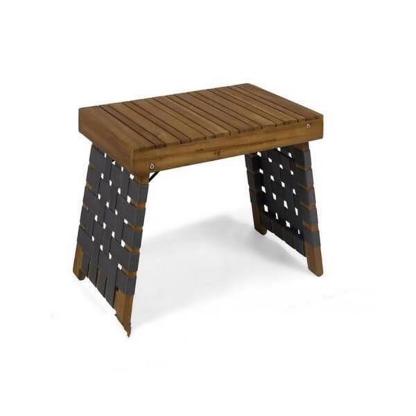 Outdoor Foldable 2-Seater Acacia Wood Chat Set with Strapping Belt Accents, Brown and Gray