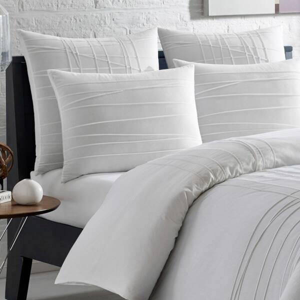 Variegated Pleats 2-Piece White Solid Cotton Twin Comforter Set