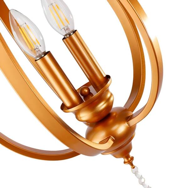 Cladinoro 100-Watt 3-Light Gold Pendant Light with Crystal Drops, No Bulbs Included