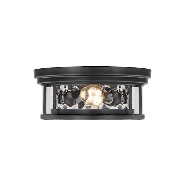 Clarion 12 in. 2-Light Matte Black Flush Mount with Inner Clear Water and Outer Clear Glass Shade