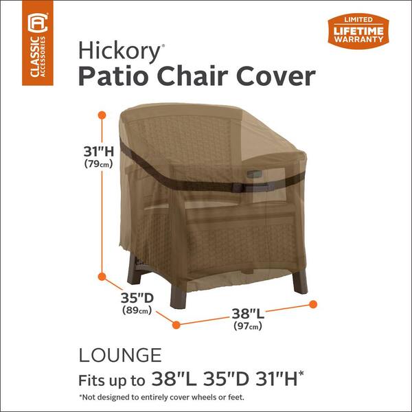 • Covers patio chairs up to 33.5 in. L x 38 in. W x 31 in. H