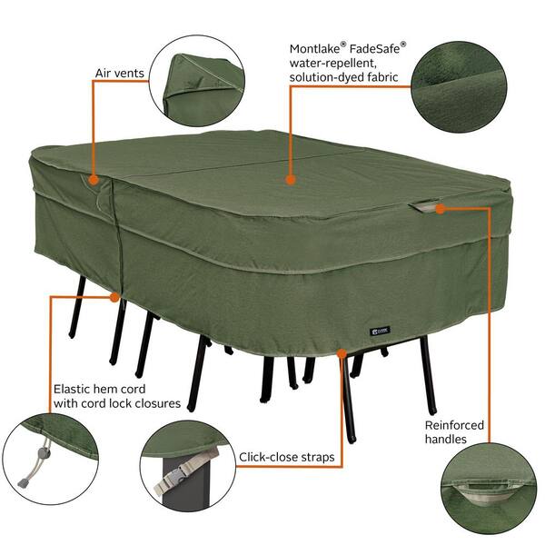 Montlake FadeSafe 128 in. L x 82 in. W x 23 in. H Heavy-Duty Rectangular/Oval Patio Table and Chair Set Cover