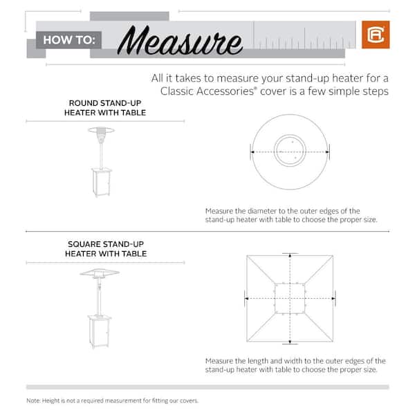 • Fits square stand-up patio heaters with tables 32"W x 32"D