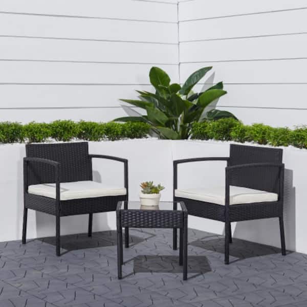 Classic Black 3-Piece Wicker Coffee Lounger 15 in. H Outdoor Bistro Set with CushionGuard