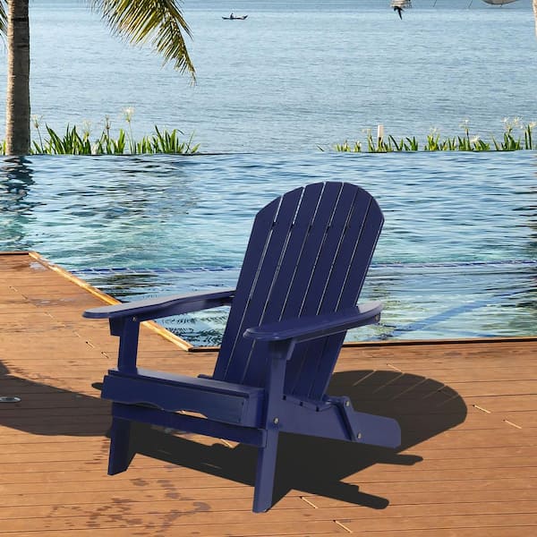 Classic Blue Navy Folding Wood Adirondack Chair