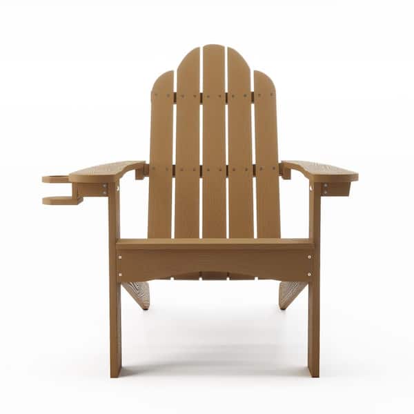 Classic Brown Plastic All-Weather Weather Resistant with Cup Holder Outdoor Patio Adirondack Chair