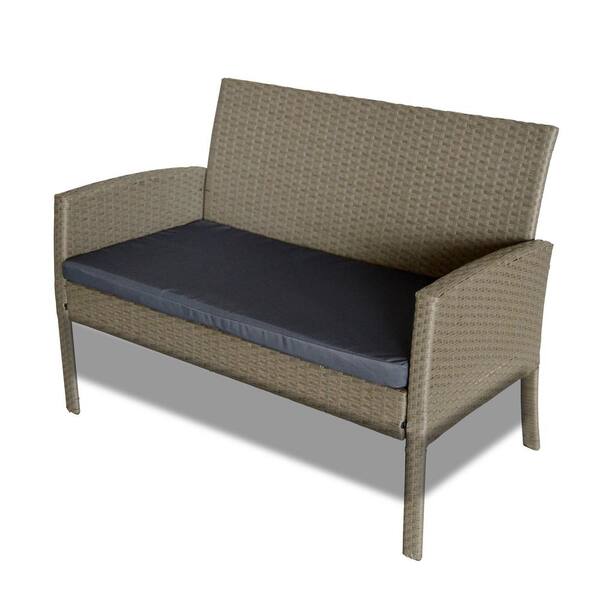 Classic Grey 4-Piece Wicker Patio Conversation Seating Set with Grey Cushion