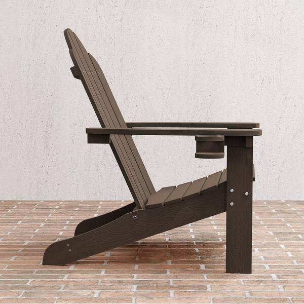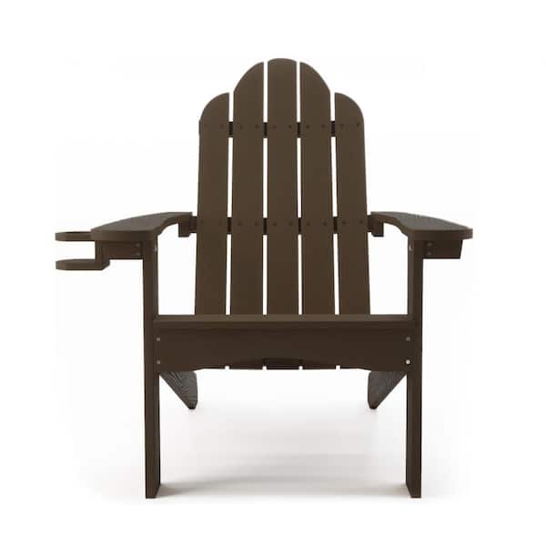 Classic Plastic All-Weather Weather Resistant With Cup Holder Outdoor Patio Adirondack Chair in Coffee Brown