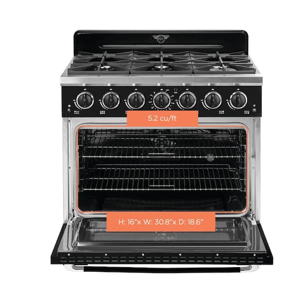Classic Retro 36 in. 5.2 cu. ft. 6-Burner Freestanding Retro Gas Range with Convection Oven in Midnight Black