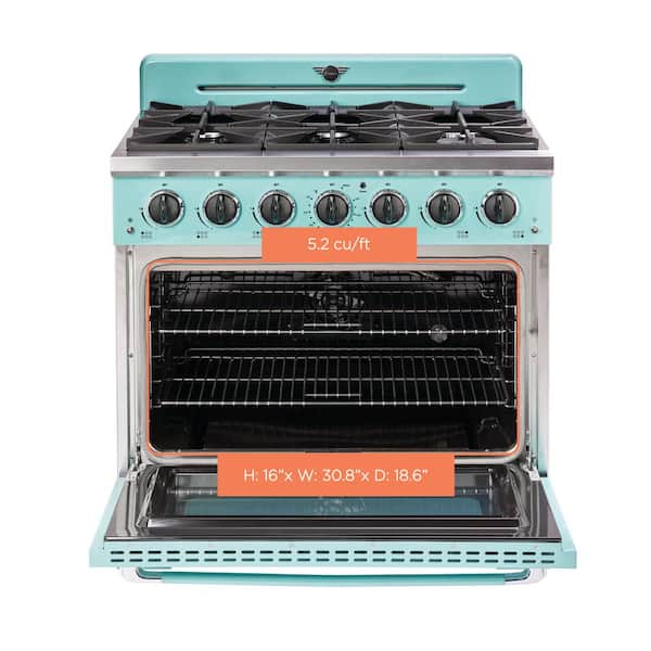 Classic Retro 36 in 5.2 cu. ft. 6-Burner Freestanding Retro Gas Range with Convection Oven in Ocean Mist Turquoise