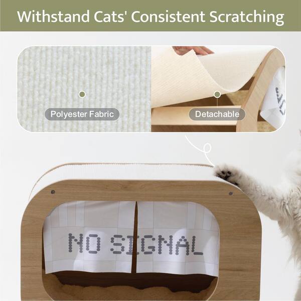 Classic Wooden TV-Shaped Cat Bed, Cat House with Cushion for Small Cat