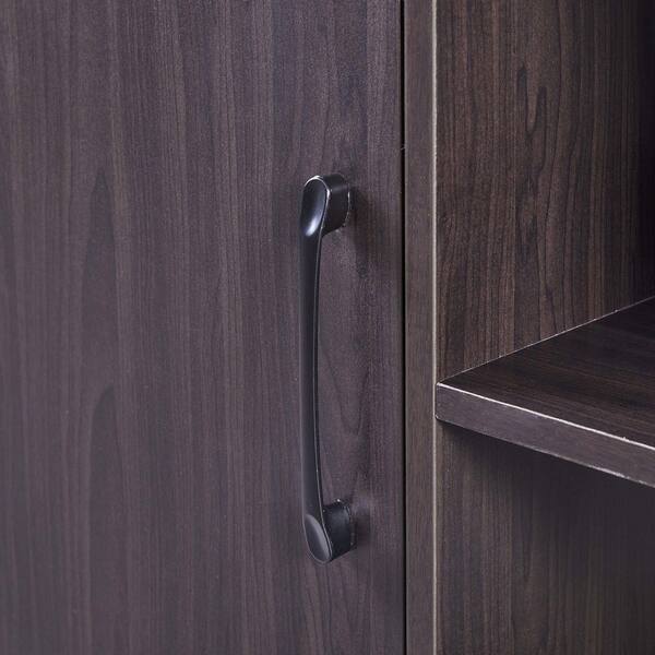 Classical Kitchen Island Cart on Wheels with Adjustable Shelf and Wine Holders in Espresso