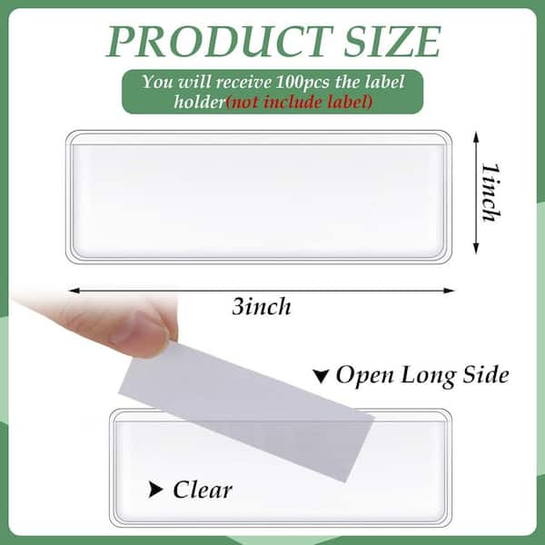 Clear Self Adhesive Label Holder Shelf Tag 3 x 1 in. PVC Index Card Pocket for Supermarket Library 100 Pieces