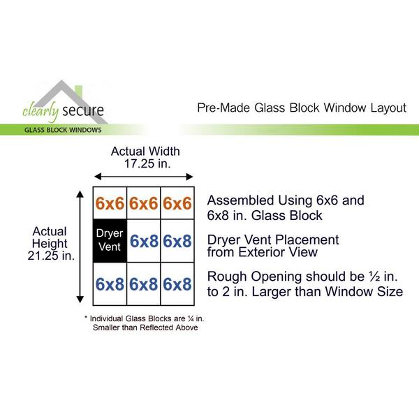 17.25 in. x 21.25 in. x 3.125 in. Frameless Wave Pattern Glass Block Window with Dryer Vent