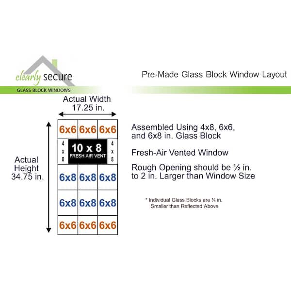 17.25 in. x 34.75 in. x 3.125 in. Frameless Ice Pattern Vented Glass Block Window