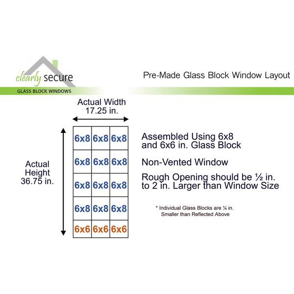 17.25 in. x 36.75 in. x 3.125 in. Frameless Ice Pattern Non-Vented Glass Block Window