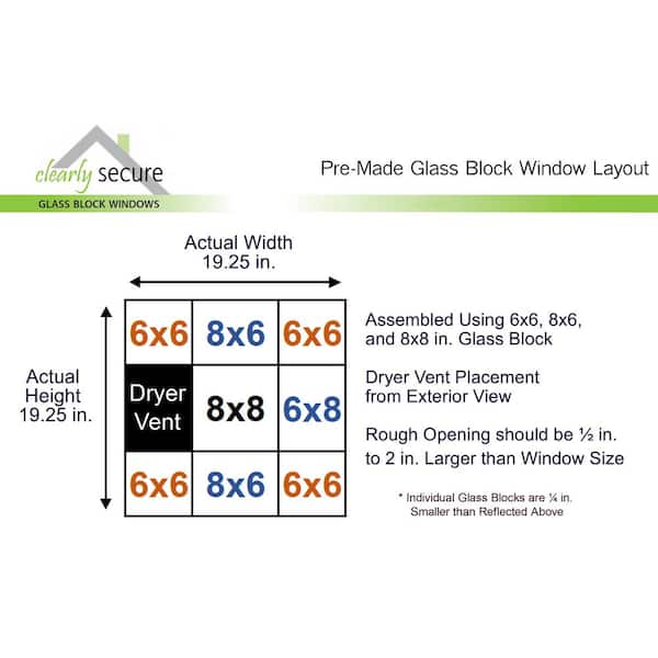 19.25 in. x 19.25 in. x 3.125 in. Frameless Diamond Pattern Glass Block Window with Dryer Vent