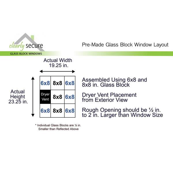 • Pre-assembled glass block replacement window with dryer vent