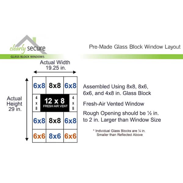 19.25 in. x 29 in. x 3.125 in. Frameless Ice Pattern Vented Glass Block Window