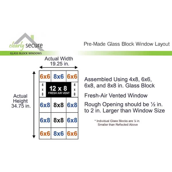 • Pre-assembled glass block replacement window with fresh air vent