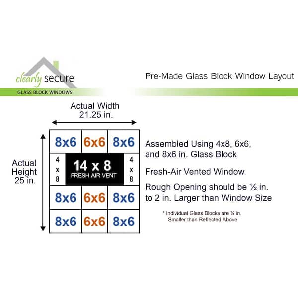 • Pre-assembled glass block replacement window with fresh air vent