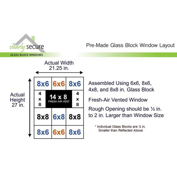 21.25 in. x 27 in. x 3.125 in. Frameless Ice Pattern Vented Glass Block Window