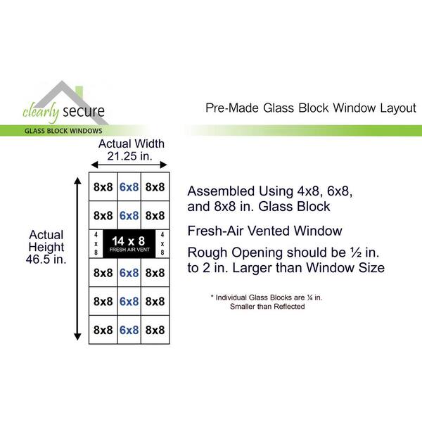 21.25 in. x 46.5 in. x 3.125 in. Frameless Ice Pattern Vented Glass Block Window