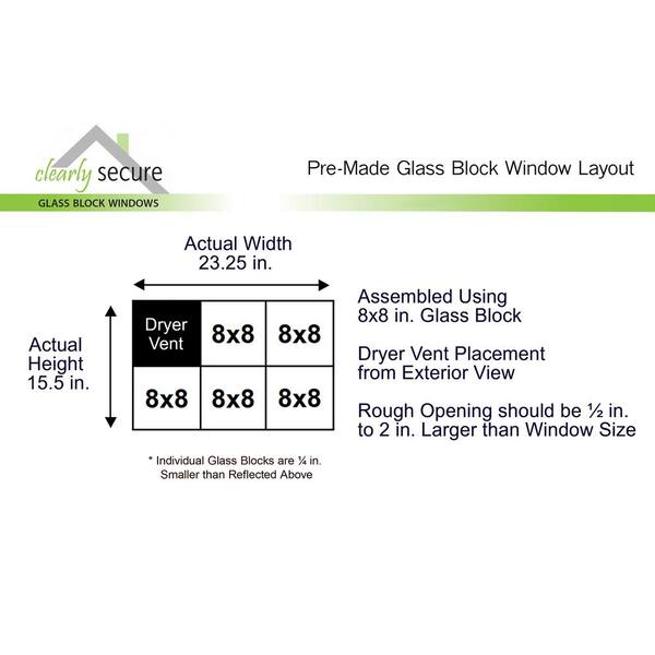 • Pre-assembled glass block replacement window with dryer vent