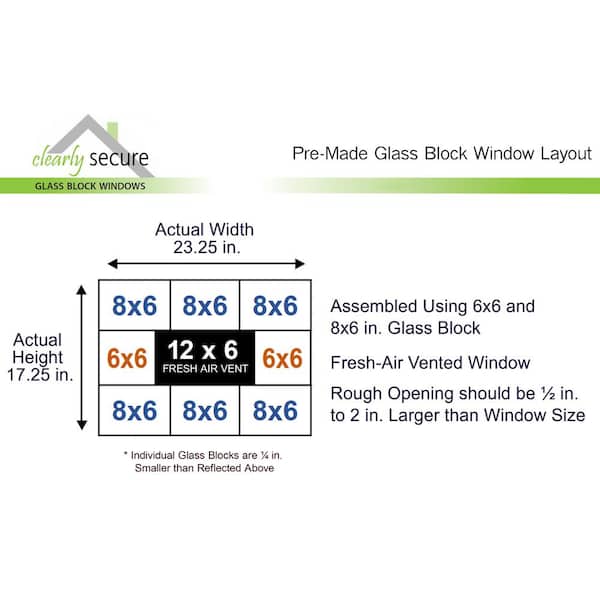 23.25 in. x 17.25 in. x 3.125 in. Frameless Ice Pattern Vented Glass Block Window